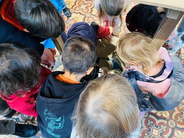 „Erde“ – Die Kinder setzten sich auf den Boden oder knieten sich hin – wie jemand, der zuhört, dient oder hilft.